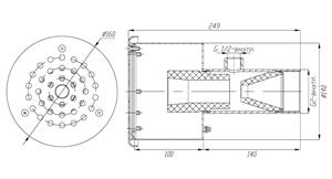 Форсунка гидромассажа производительностью 20-40 м3/ч (арт. ФГ.20) имеет закладную с резьбовым подсоединением 2 дюйма, поставляется в комплекте с эжектором и лицевой панелью.