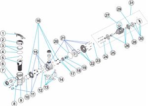 Корпус и опора насоса выполнены из термостойкого пластика, вал мотора выполнен из нержавеющей стали AISI-316 с двойной изоляцией и степенью защиты мотора IP-55.