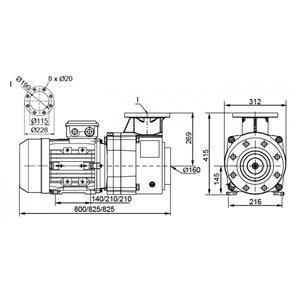 | Входное/выходное отверстие | Фланец 160/6" / Фланец 110/4" |