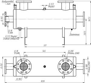 - Подсоединение: контур теплоносителя фланец Ду 65, контур бассейна - фланец Ду 80